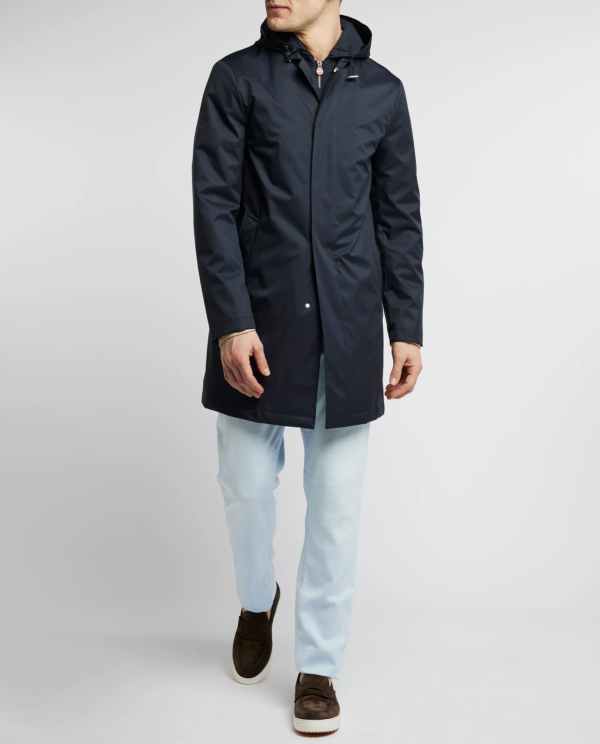 Deze sportieve overjas van Kiton is ideaal voor de frisse dagen in de lente of zomer. Gemakkelijk om te gebruiken tijdens de tussenseizoenen en lekker warm door de lichte padding. De jas heeft een uitritsbaar deel waar de capuchon aan vast zit, haal je deze eruit, wordt de jas formeler. Gemaakt in Italië.