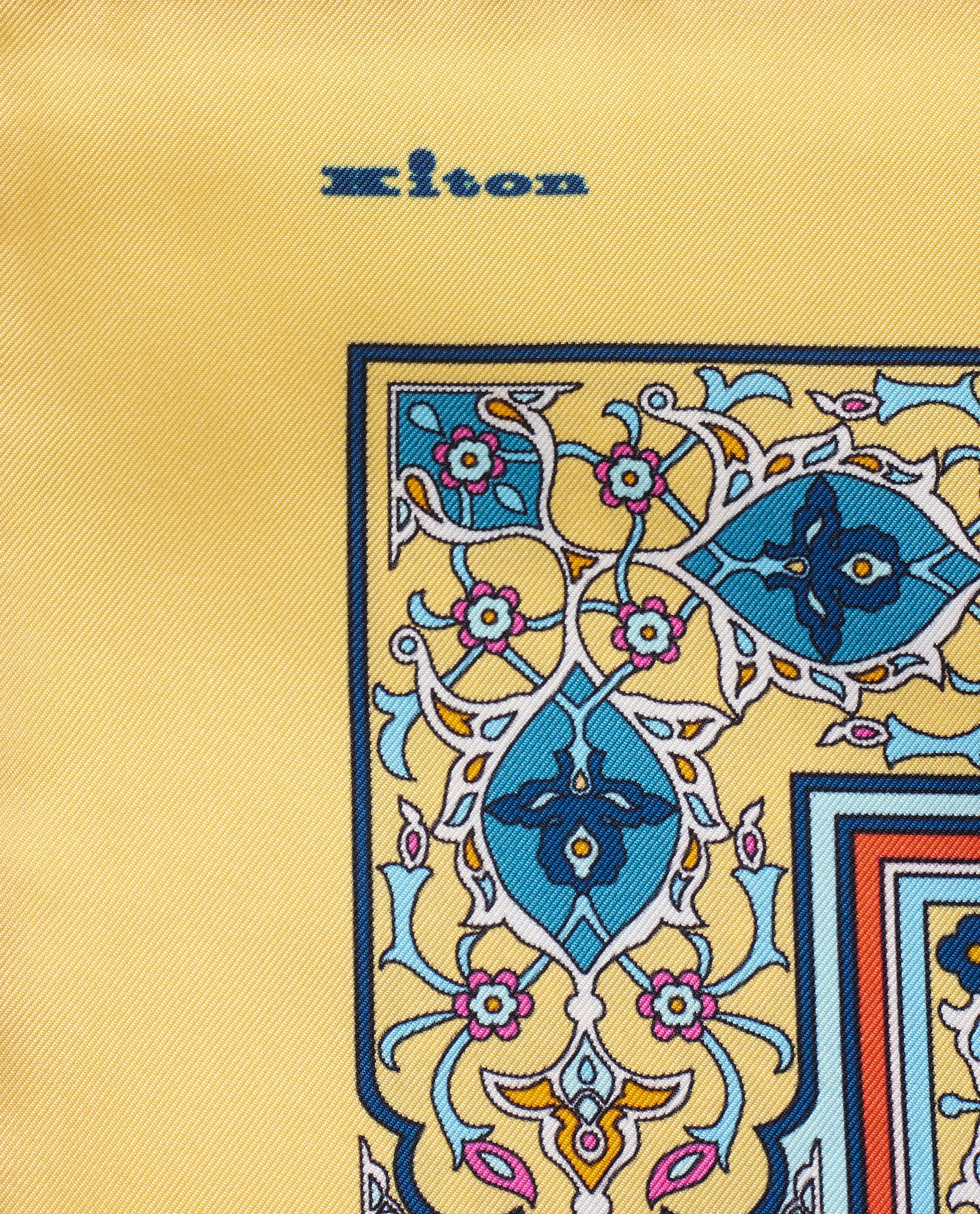 Het met zeefdruk bedrukte pochet van Kiton is een meesterwerk van vakmanschap en elegantie. Met afmetingen van 40 x 40 cm is dit accessoire met zorg ontworpen om elke outfit te verrijken met zijn luxueuze charme. De met de hand gerolde randen benadrukken de nauwgezette aandacht voor detail en zorgen voor een verfijnde en elegante afwerking. Dit in Italië vervaardigde pochet belichaamt de uitmuntendheid van Italiaans vakmanschap en combineert stijl en kwaliteit tot een tijdloos accessoire dat zowel klassieke als moderne kledingstukken complementeert.