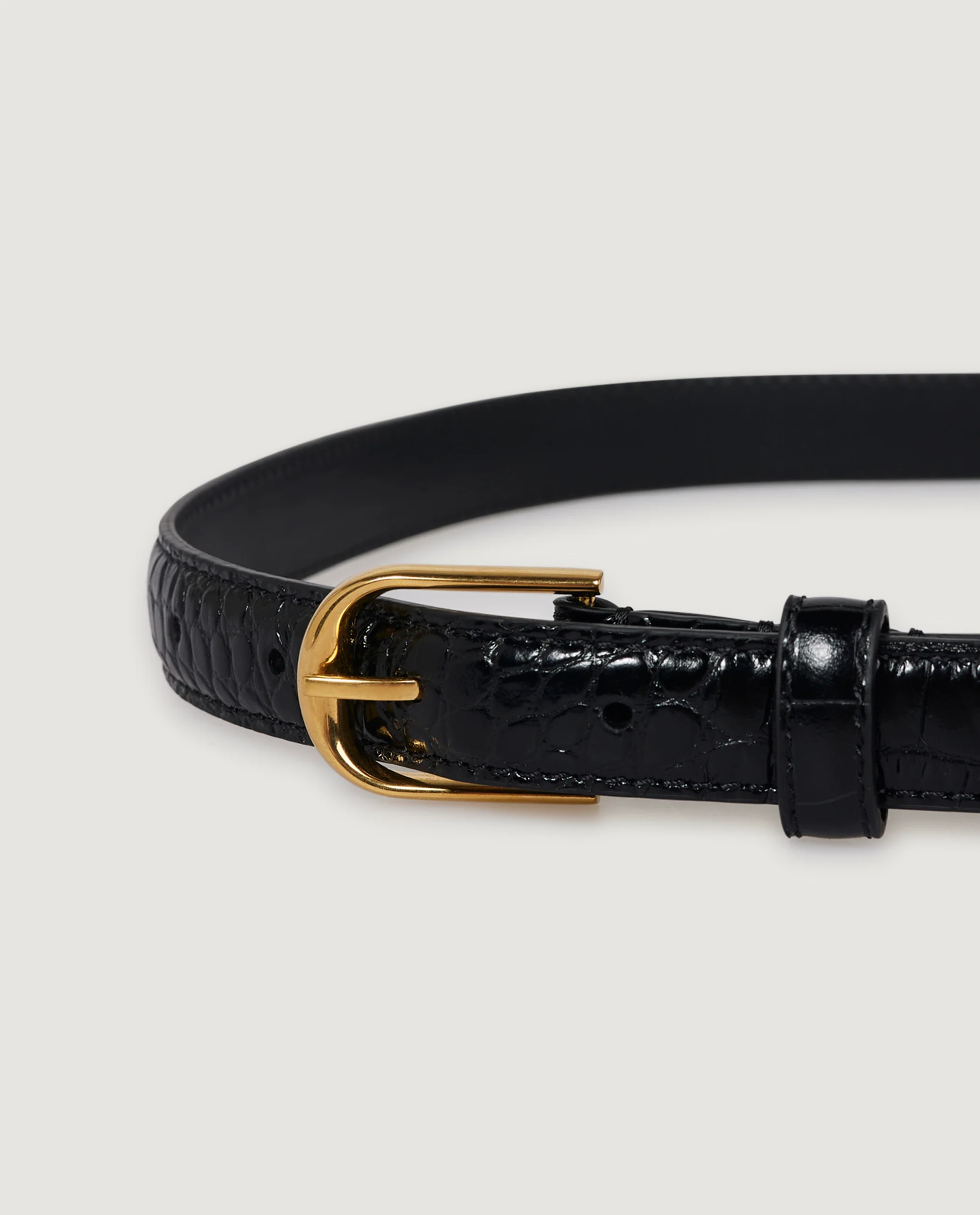 De Jane Belt in alligator-gebosseleerd kalfsleer combineert tijdloze verfijning met modern vakmanschap. Gemaakt van hoogwaardig kalfsleer, heeft deze riem een ingewikkeld alligator-gebosseleerd ontwerp dat zowel textuur als elegantie toevoegt. Perfect om elke outfit te verbeteren, de riem biedt veelzijdigheid en past moeiteloos bij op maat gemaakte broeken, jeans of zelfs jurken. Het strakke silhouet en de minimalistische gesp versterken de stijlvolle aantrekkingskracht nog meer, waardoor het een onmisbaar accessoire is voor elke garderobe.