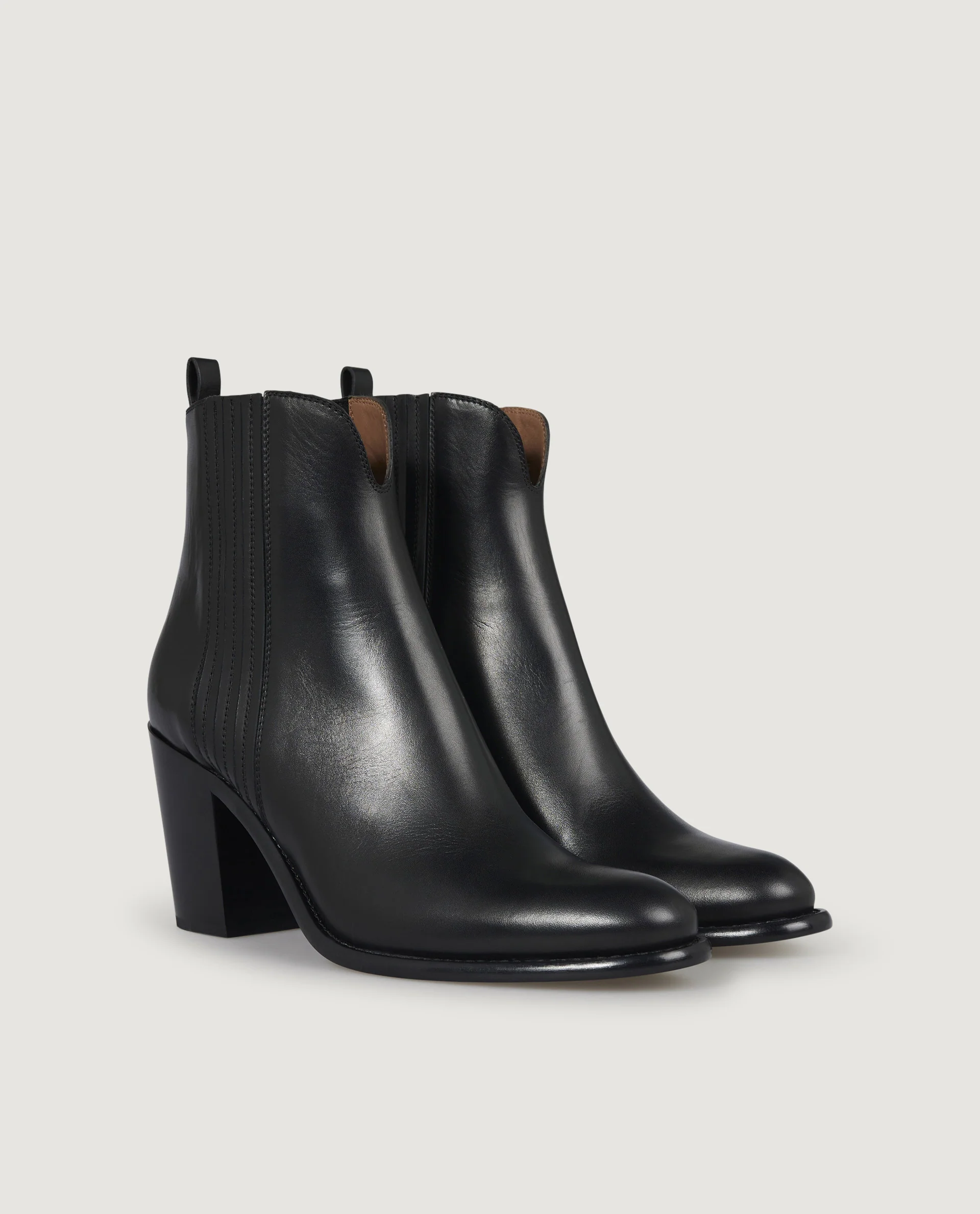 Tijdloze en veelzijdige enkellaarsjes van Sartore. Gemaakt van zeer zacht kalfsleer, inclusief een leren zool en een afgeschuinde hak. De flexibele constructie en de elastieken aan de zijkant zorgen voor echt comfort.