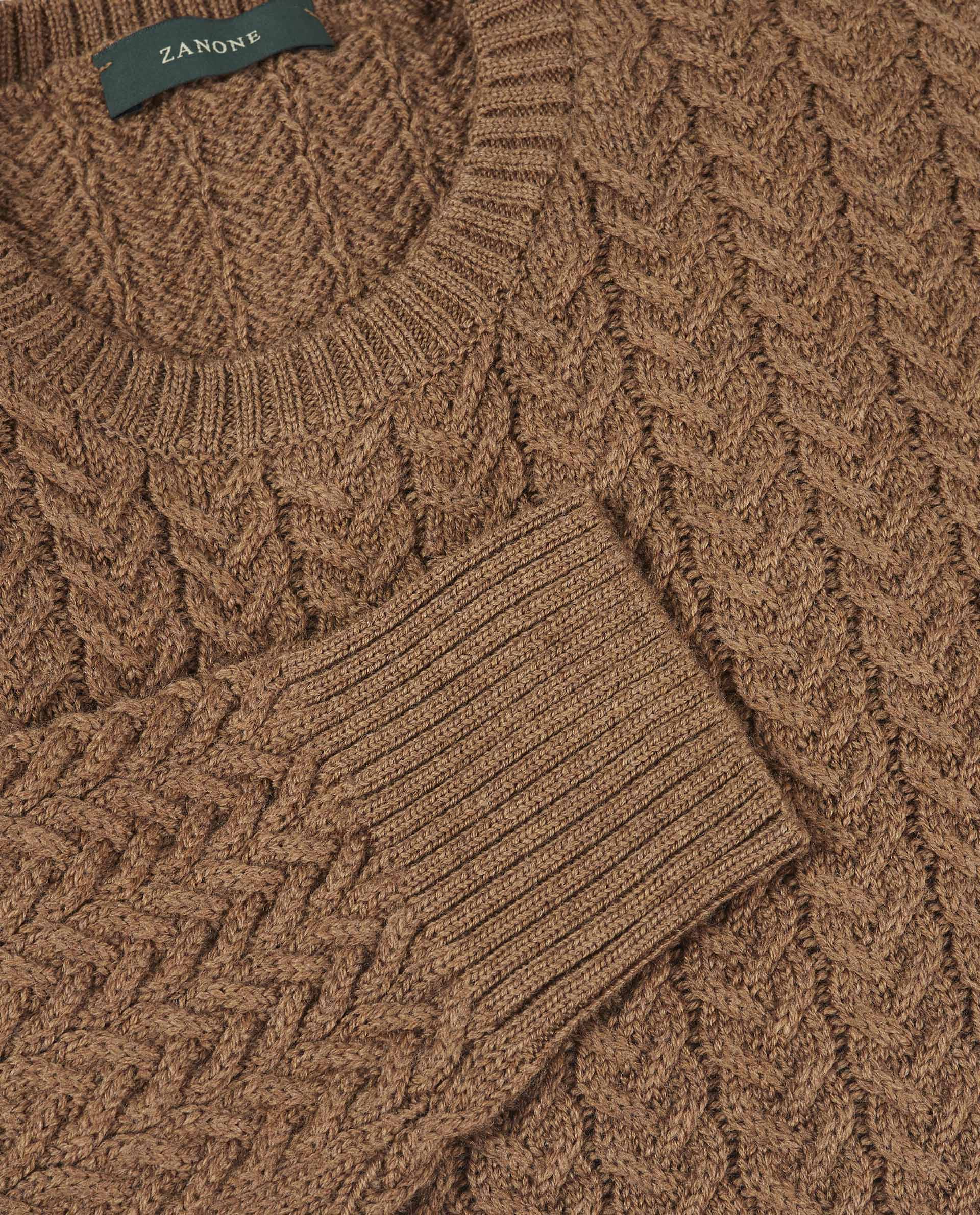 Ronde Hals Kabel Trui - Lichtbruin