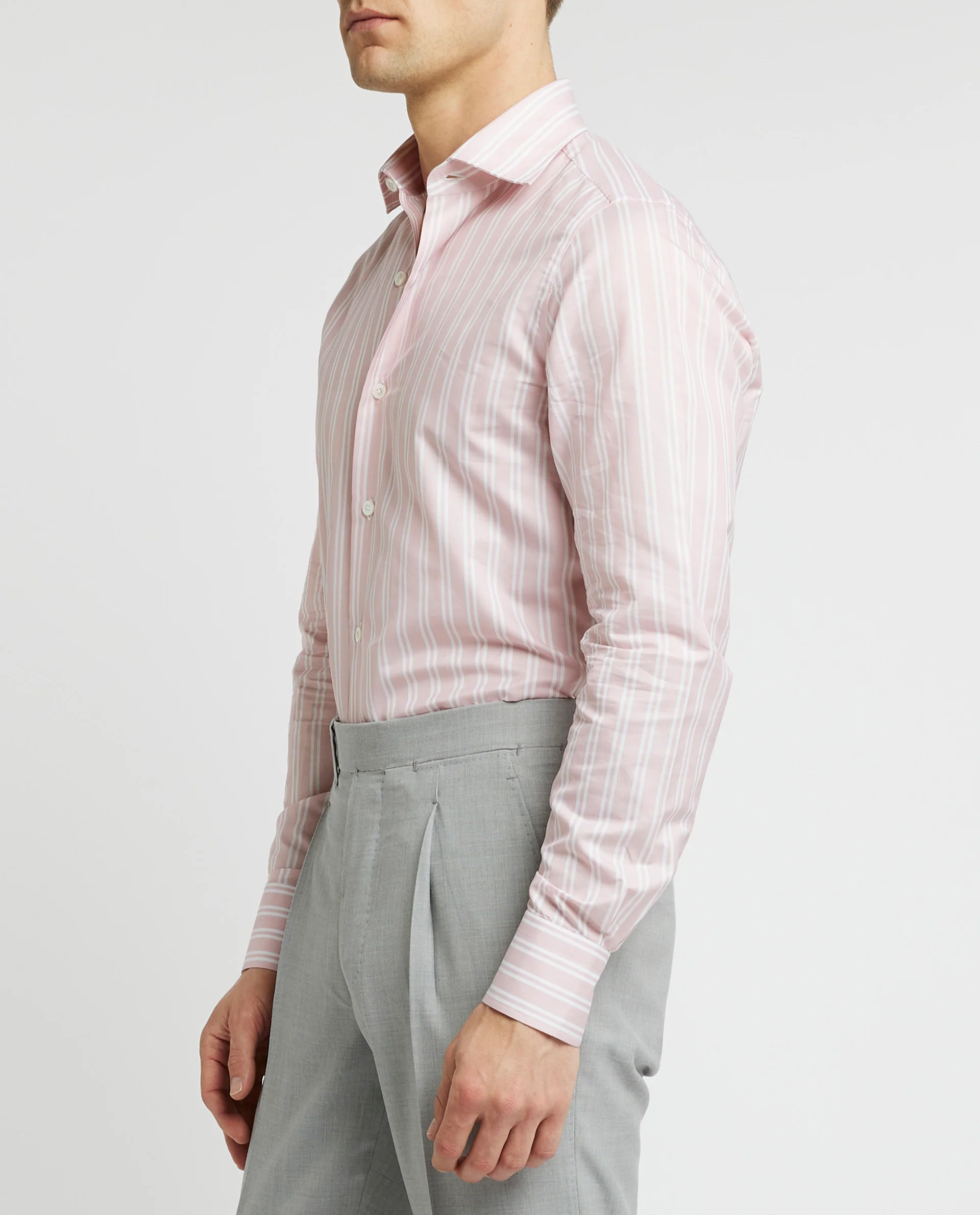 Dit luxe shirt is uitgevoerd in een zachte katoen met de bekende Eduardo boord. Finamore kenmerkt zich door traditioneel Napolitaans vakmanschap en handgemaakte details. De shirts zijn van hoge kwaliteit en worden vervaardigd in de fijnste materialen. Dit shirt is goed zowel casual, als formeel te gebruiken door zijn gestreepte patroon.