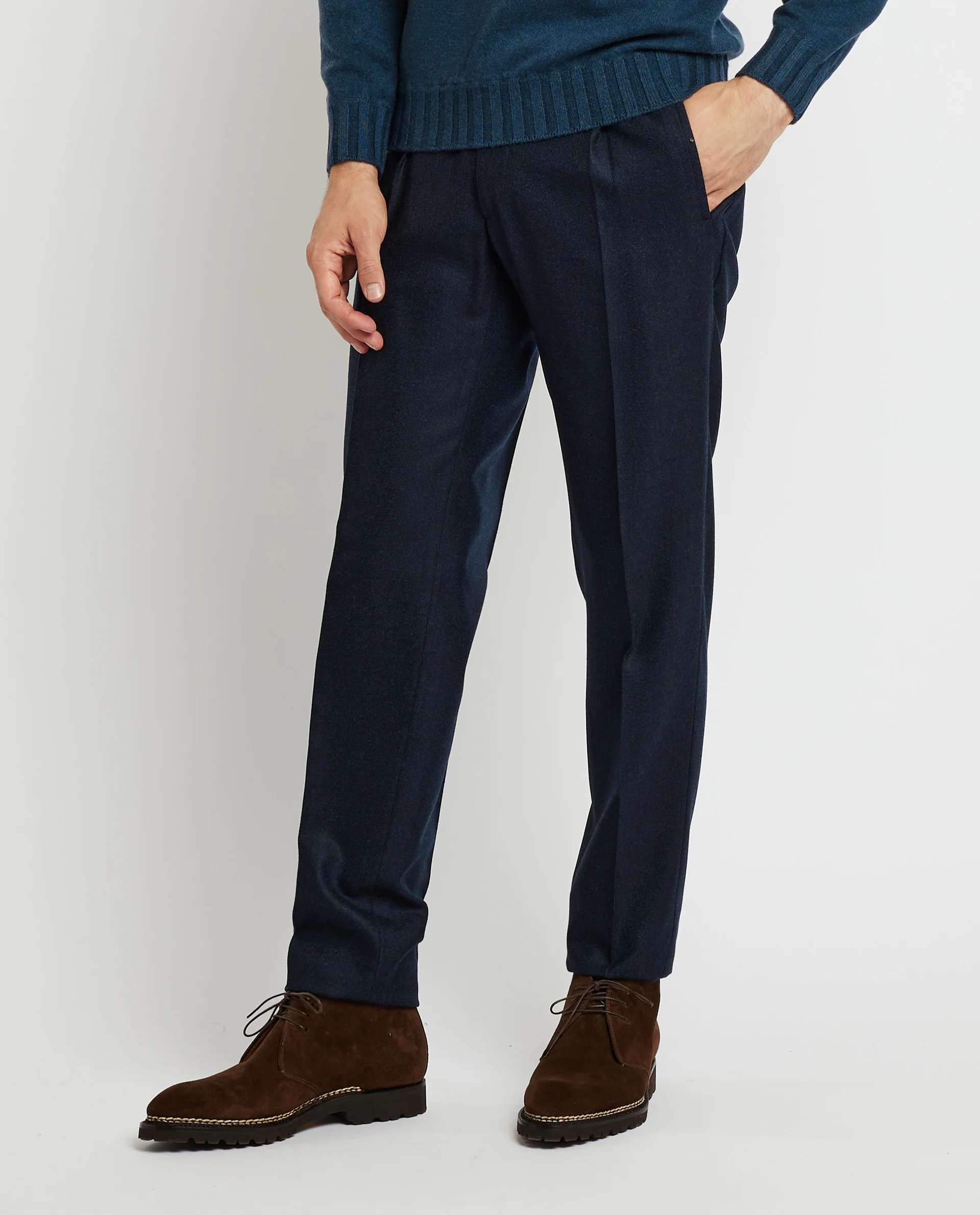 Deze broek van Kiton is vervaardigd in een luxe wol-cashmere combinatie. Door zijn zakelijke uitstraling, maar informele materiaalcombinatie de perfecte `smart-casual` broek. Ontworpen voor formele ontspanning. Gemaakt in Italië.